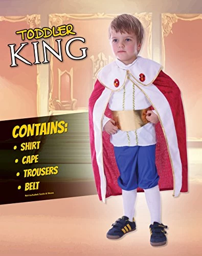 This costume was very good value for the money. I actually bought two costumes in case this didn’t look good enough, but this was the one I chose in the end. My 3 year old son fitted it like the child in the picture. I think an older child could wear it too though.You will need to provide your own long socks to get the look in the image. I also bought a separate crown and sceptre which were suggested on Amazon were and also great.The only cons of this outfit are that the Velcro is delicate so I would recommend safety pinning it for the performance or it will definitely get pulled off by a child or getting caught on something. Also, one of the ruby’s on the cape came unstitched during the performance somehow, it was dangling by the 2nd thread (so an extra stitch here might also be useful).The other costume I bought was a Smiffy one. I thought it looked higher quality but when I got them both, I did prefer this one. (although the smiffy one is longer if you have a bigger child).Overall this looked really good, was comfortable and easy to put on. I would recommend.