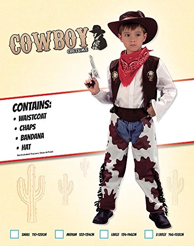 - Outfit Includes Waistcoat, Chaps, Hat and Neckerchief