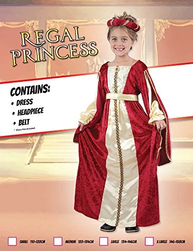 I found the quality and appearance similar to Disney dress up princess styles. Would have preferred free delivery as the total cost with delivery included was just over sixteen pounds. For a one day medieval dress up day at school it was more than I wanted to pay considering my boys knight dress up came in at half that price. Liked the headdress which gives the medieval look. The sizing size small fit my 5 year old for who wears age 6 in M&S/ next.