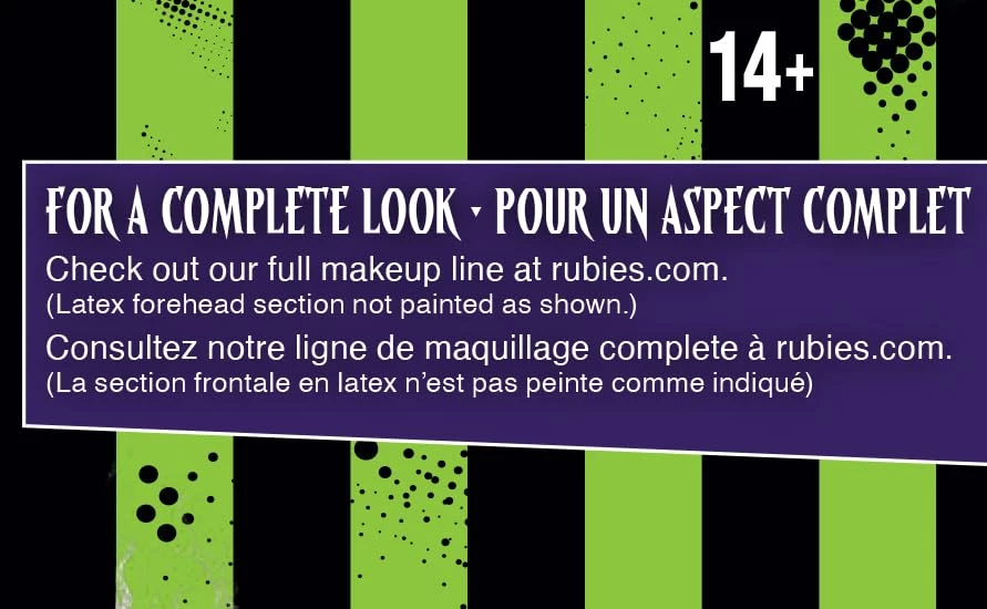 - Officially licensed Beetlejuice head cap and attached costume wig; look for trademark on label and package to help assure you’ve received an authentic safety-tested item