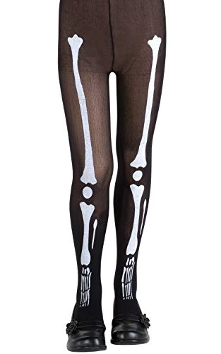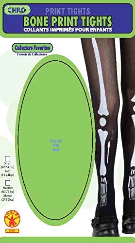 Official Rubie’s product tights available in child’s sizes S 3-4 and M 5-7, skeleton and day of the Dead dress up accessory. These tights give a whole new meaning to “see-thru”. show off your bones to best effect when you match them to any Halloween frock. They’ll appear to glow as you go.