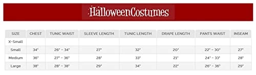 - IMPORTANT: Costumes are not sized the same as clothing, consult the Rubies Size Chart before selecting