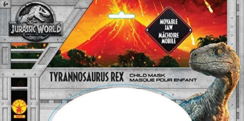 Rubie’s product one size child’s mask. Yawn or roar with gums open wide. Either way, open or closed, this clever T-Rex mask sports a fine set of fangs, well able to see off predators around your Jurassic world.