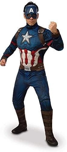 You Can Do this All Day Captain America just never gives up. Even when the odds are stacked against him, he still puts up a good fight! Rude thugs at the movie, old buddies-turned baddies, and even A-class supervillains—he’ll keep fighting until the good guys win the war. That’s why we love Cap! Well, that and we love the rad outfit he’s been rocking these last 10 years. He’s had many variations of the classic Captain America Fancy Dress Costume, from his humble beginnings in The First Avenger, to his iconic look in the first Avengers movie, and even his stealth suit in Captain America: The Winter Soldier. Finally, his look from Avengers: Endgame brings us back to a classic look that’s ready to tussle with the universe’s greatest villain. Now, you can get Cap’s look when you wear this officially licensed Fancy Dress Costume. Product Details This Avengers: Endgame Captain America Fancy Dress Costume is a deluxe outfit based on Cap’s uniform in the film. It comes with a jumpsuit that has printed details, like the silver star on the chest and the iconic stripes in front, to give it the look of armor. It also has faux straps around the shoulders and waist to give the suit a battle-ready appearance. It also features attached boot covers, which let you wear your favorite pair of shoes with the Fancy Dress Costume while maintaining true superhero style. Finally, the mask fits with an elastic band and finishes the outfit to get you geared up for a fight with Thanos. The Cap Attitude Captain America proves that all you need to be a superhero is a determined attitude and a heroic Fancy Dress Costume (and maybe some Super Soldier Serum). We can help you get outfitted in the Fancy Dress Costume if you can bring the attitude to the table. Who knows? Maybe you have what it takes to defeat Thanos once and for all! – Jumpsuit w/ Attached Boot Covers – Belt – Mask