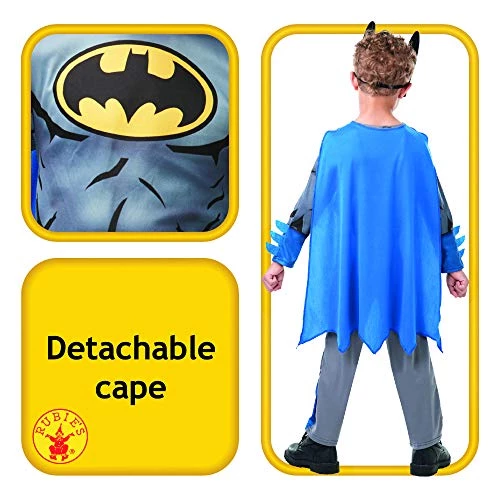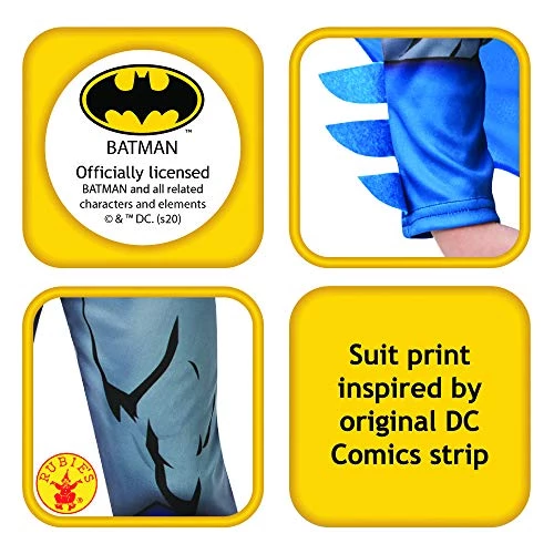 I recently purchased the Rubie’s Official DC Comics Batman Comic Book Child’s Classic Costume for my four-year-old child, and I am beyond impressed with the quality and attention to detail in this superhero fancy dress. My little one has been wearing it every day since it arrived and has been living out his superhero dreams, shooting up and around our house like Adam West himself!The costume is made of high-quality materials, and the attention to detail is remarkable. The outfit includes a classic Batman jumpsuit with attached boot covers, a black cape, a yellow utility belt, and a bat mask. The jumpsuit is made of durable and comfortable fabric that fits my son perfectly. The attached boot covers give the illusion of wearing actual boots, which adds to the authenticity of the costume.The cape is made of a lightweight fabric that flows beautifully behind my son as he zooms around the house. The yellow utility belt is a nice touch and adds to the overall look of the costume. The bat mask is easy to put on and take off and provides the perfect finishing touch to the outfit.One of the biggest benefits of this costume is the joy and excitement it has brought to my little one. He loves being Batman and saving the day, and this costume allows him to do just that. The costume is also very durable and has held up well to my son’s constant use and wear. The high-quality materials used in its construction mean that it can withstand lots of playtime and still look great.In conclusion, if you’re looking for a high-quality superhero costume for your child, the Rubie’s Official DC Comics Batman Comic Book Child’s Classic Costume is an excellent choice. It is durable, comfortable, and authentic-looking, and it has brought endless hours of joy and excitement to my little one. I highly recommend it!