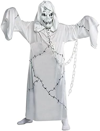 - COSTUME INCLUDES: Includes white hooded robe, face mask and chains.