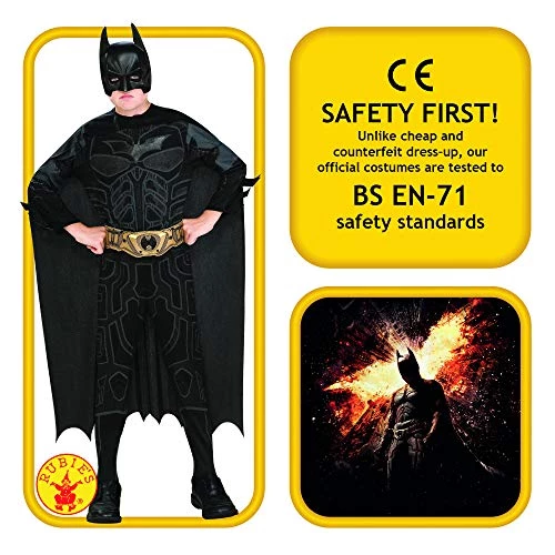 Lovely, well made Batman outfit for my 5 year old son. He is mad on Superhero’s and wanted a black batman costume. I should have maybe ordered the small size but he has just turned 5 (albeit a small 5 year old) but this is so big on him I have to tuck the legs into his socks and the cape drapes across the floor. The mask is comfortable though with padded eye pieces. He is thrilled with it! I may invest in some gloves if he is a good boy!