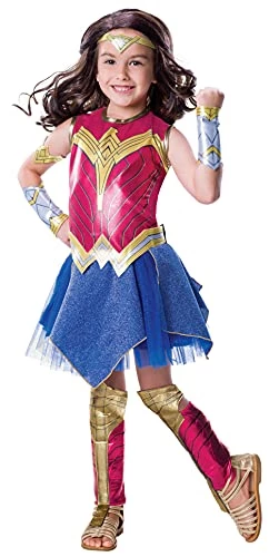 Official Rubie’s product Spin your way from Diana Prince to Wonder Woman. Cross your arms and strike a pose: you have all you need from armbands to shin guards and tiara to turn into the Amazing Amazon. But be warned, the evil Doomsday is after you.