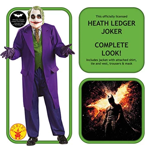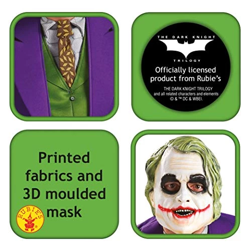 Disguise Joker (Batman â„) for adult comprising: a purple jacket with white shirt and green vest sewn inside, purple trousers, a tie, a mask.