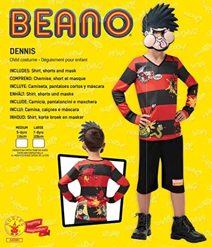 Perfect for World Book Day.Very synthetic and small size for a slender 9 year old but it ARRIVED totally on time and Denis fans will like it.