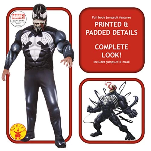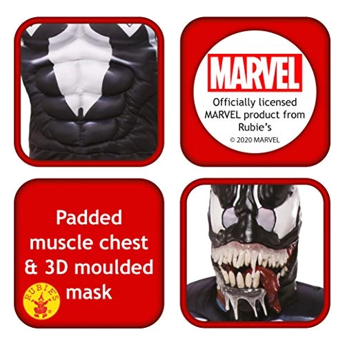Official Rubie’s product from the Disney Marvel Range Slip into this slippery Venom suit and you will have been taken! The escaped symbiotic life form will wrap itself snuggly around you as you bond with the mysterious creature “The way I see it they can do whatever they want!” Founded in Queens New York in 1951 by newsagents Rubin and Tillie Beige By 1990 Rubie’s Costume Company had signed it first licence with Paramount Pictures to manufacture Star Trek costumes Since then they have added famous names such as Batman Spider-man Star Wars Frozen Harry Potter Power Rangers Disney Princess and hundreds more With a base in the UK since 1996 Rubie’s award-winning costumes and accessories are made to the strictest safety standards in line with the European Toy Safety Directive Rubie’s inspires children and adults of all ages with fun and fantasy outfits for everyday dressing-up Book Week Halloween festivals birthdays movie launches fan conventions Christmas and more Safety Warning