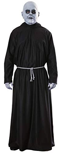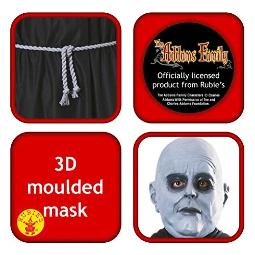 Fester fancy dress costume. Become everyone’s favourite uncle with this quirky Uncle Fester costume. Includes mask, robe, belt cord. Complete with a long robe which pulls easily over your head and ties at the back/ comfortable fit. Standard size.
