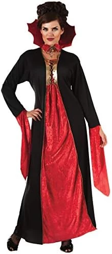 Gothic vampires costume includes red velvet standing collar and black dress featuring red velvet bell sleeves and front panel with metallic gold trim and lace-up drawstring across the bust. Rubie’s costume company has been bringing costumes and accessories to the world since 1950. As the world’s costume leader, we take seriously the mission to make dressing up fun Mascots, rental quality costumes, masks, wigs, accessories, shoes, and every significant licensed costume you would ever want to wear can be found under the rubie’s brand. Still family owned and still family focused, rubie’s brings you fun for every season: Halloween, Christmas, mardi gras, Easter, and all in-between