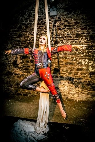 - Ladies Harley Quinn Costume, Iconic Jumpsuit with attached belt and separate jacket from Suicide Squad 2