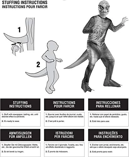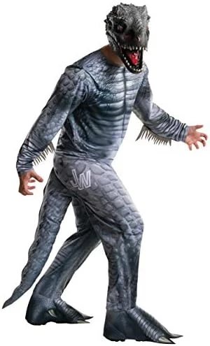 Official Rubies’ product available in adult sizes standard and large. Make like a dinosaur and take a tour around the fallen kingdom. Blue, the lead Raptor, is freshly escaped from what remains of the Jurassic world theme park, swinging a giant tail and Bearing a fine set of jaws. Others better run.