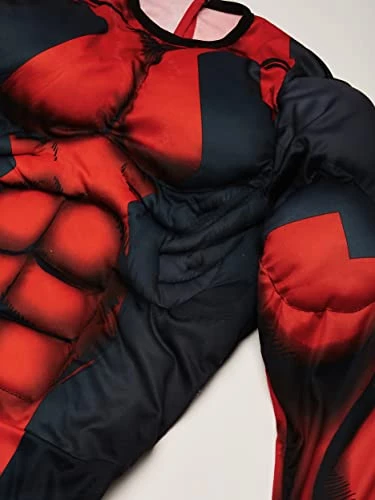 Padded muscles where uneven . and why can you not add a fly zipper to these outfits it is totally stupid. If you have something strapped to your back, you’ll have to literally take the full outfit off to go to toilet to relieve yourself.😟🤨🤨🤨🤨