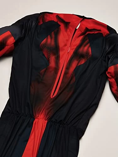 Bought this costume to wear to a movie-themed works’ summer do. Not content with ordering a padded costume to walk across Manchester in 30+ degree heat, I also ordered the “weapon pack”. Thank god the mask covers up the embarrassment of a middle-aged man walking around in public wearing plastic swords. I got A LOT of strange/bemused looks. What they couldn’t see thankfully (but most probably suspected) was that I was sweating my nuts off in it. As I stood smugly, beer in hand, at the work’s do, in walked a colleague … in the full theatrical (leather!) version of this. It was like M&S costumes meets B&M costumes. The only consolation was the heat which forced my colleague to go change before passing out due to dehydration. The costume is great. But you get what you pay for. The weapon pack is also impossible to use once strapped to your back. I also ordered the utility belt which was great for storing money/keys/phone in 🙂 and better and more useful than the printed piece of material that comes with it that you just tie around your waist. All-in-all, reasonably good value, but unless you could do with losing a bit of weight, then think twice about wearing it in warm weather! 🙂