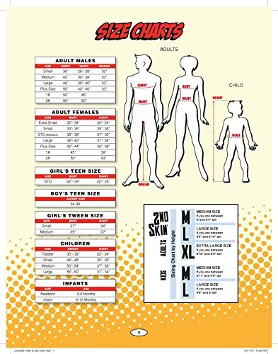 - Costume available in adult sizes X-small, small, medium and large – see size guide for reference