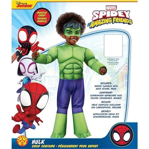 Official Spidey and His Amazing Friends product created by Rubies. Don’t make me angry! This padded jumpsuit with attached shoe covers and fabric headpiece will transform anyone into a mean green machine! Available in toddler sizes, this costume is ideal for any fans of the Marvel superheroes and perfect for birthdays or costume parties.