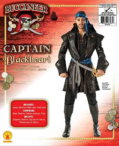 Rubie’s Official Product. “Fancy fighting’ and carousing’ on the high seas, me hearty?” Put down your spyglass and arrest your gaze on this nautical attire. Captain Blackheart’s an evil sort and won’t suffer dopey crew members gladly or you’ll walk the plank.