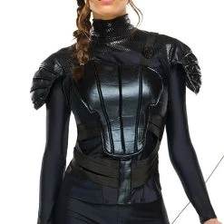 If you want to lead the rebellion, you need to look the part. Step out from District 13 looking like a futuristic soldier that has every intention of bringing down the Capitol. This Adult Katniss Mockingjay Fancy Dress Costume will protect you in a sleek and stylish all black armor. You’ll be a symbol of hope and rebellion that neither President Snow or President Coin can ignore. Grab your bow cause you never know when and where you’ll need to protect yourself. No one can be trusted now. However, you can trust in this Fancy Dress Costume because it will turn you into Jennifer Lawrence’s doppelganger . Let’s just hope you don’t meet up with President Snow’s doppelganger. – Shirt w/ Attached Armor – Pants w/ Attached Knee & Shin Guards – Mockingjay Pin