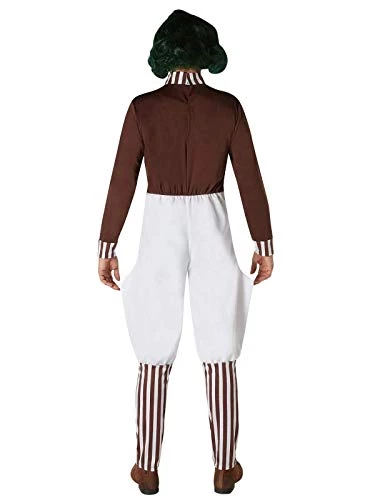 A classic movie and book character costume from Willy Wonka and The Chocolate factory this Oompa Loompa outfit includes a brown and white dungarees jumpsuit with shaped legs. DOES NOT INCLUDE WIG.