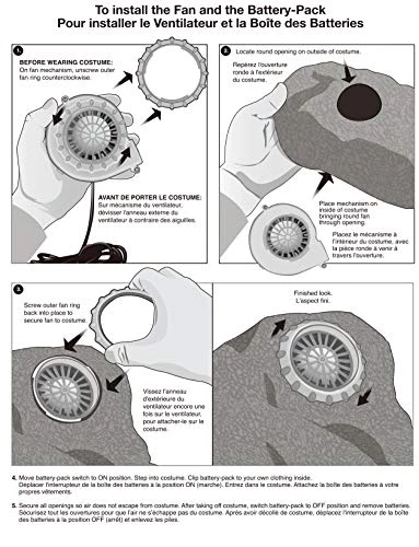 - Product includes inflatable costume, gloves, fan with battery pack, not included: (4) AA batteries