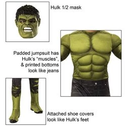 Rubie’s Official Marvel Avengers Endgame Hulk Classic Childs Costume, Kids Superhero Fancy Dress