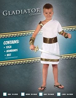 Bristol Novelty CC421 Gladiator Costume Set | For Kids | White Accessory, Gold, Age 6-8 Years Old